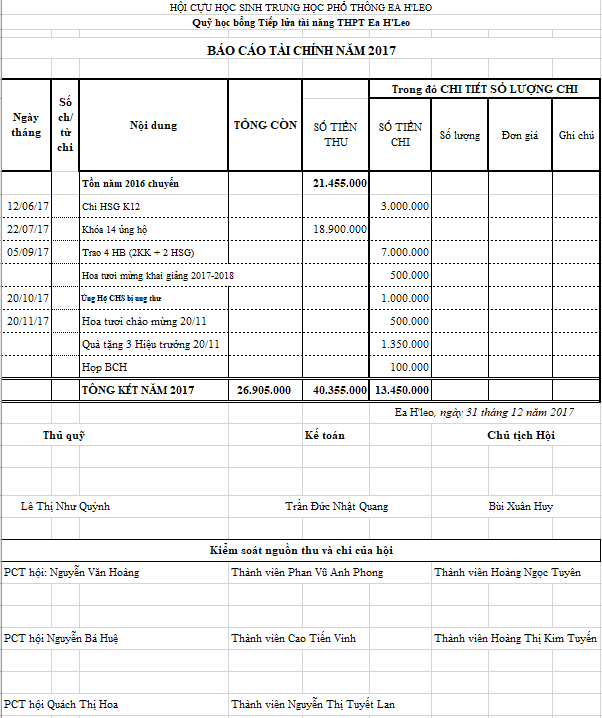 Báo cáo tài chính của Quỹ Tiếp Lửa Tài Năng năm 2017