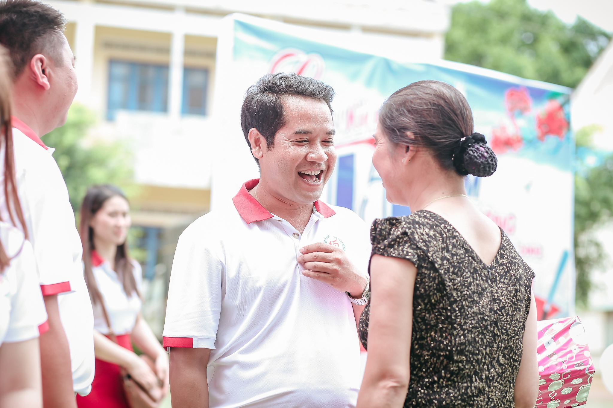 * Tất cả các lớp trong khóa đều có mặt đại diện gặp mặt,đón tiếp thầy cô giáo cũ tại trường. Gặp mặt các bạn xưa nhiều năm không gặp lại: xúc động hồ hởi. Gặp các thầy cô chủ nhiệm cũ, nhất là các thầy cô giáo trẻ lúc đó mà đã là giáo viên chủ nhiệm, dạy học lớp 12 (anh giáo trẻ?!!!) như thầy