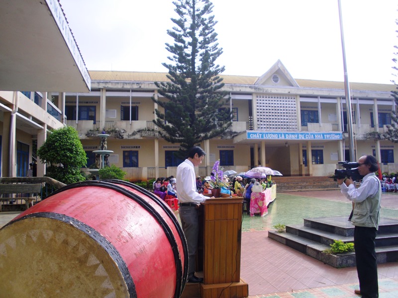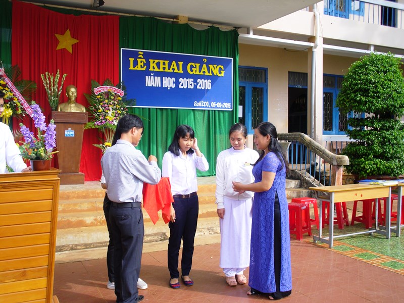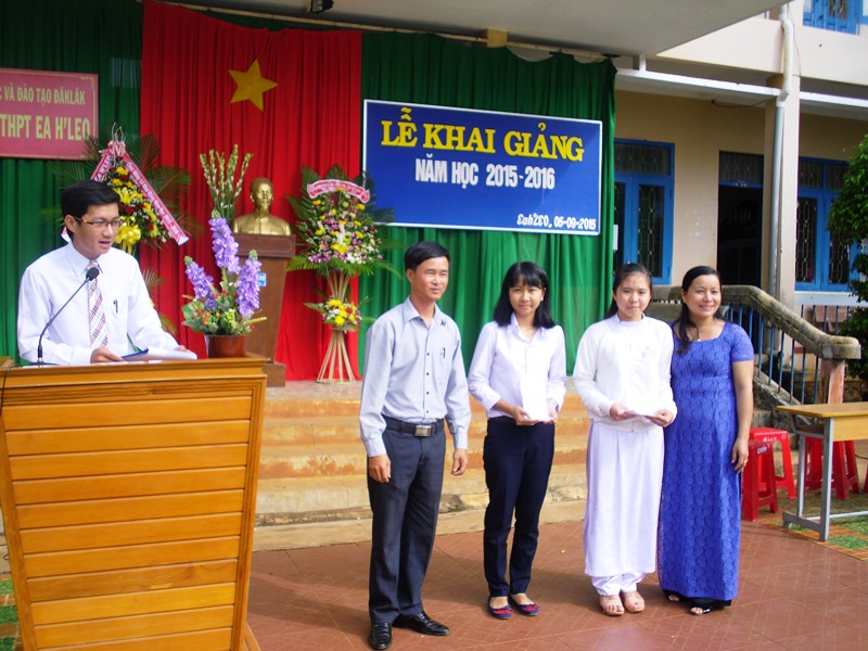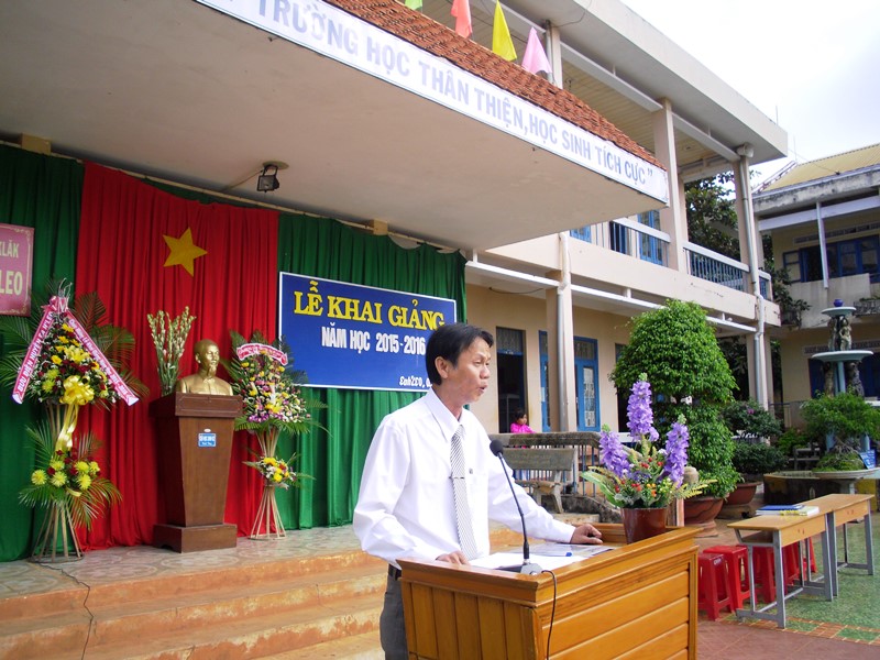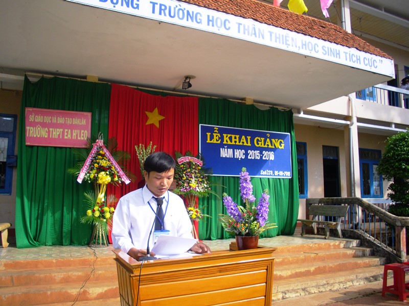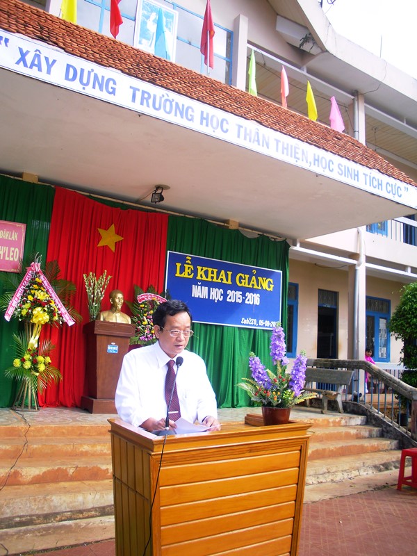 Đồng chí Nguyễn Văn Cảnh, bí thư huyện ủy Ea H’Leo đọc thư của chủ tịch nước tại lễ khai giảng năm học 2015-2016
