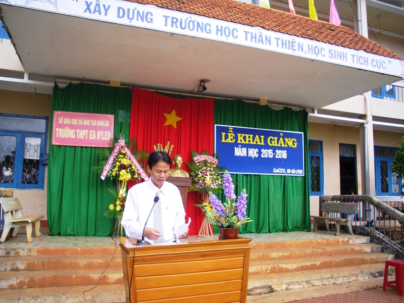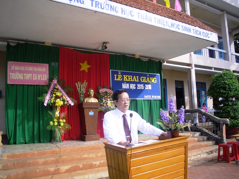Đồng chí Nguyễn Văn Cảnh, bí thư huyện ủy Ea H’Leo đọc thư của chủ tịch nước tại lễ khai giảng năm học 2015-2016